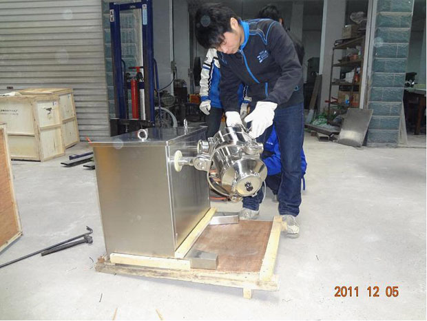 為達(dá)到三維混合,制造關(guān)鍵:在于使幾個(gè)運(yùn)動(dòng)關(guān)節(jié)靈活,且耐用。我廠改進(jìn)后的SWH型三維混合機(jī),運(yùn)行靈活,轉(zhuǎn)動(dòng)均勻,無(wú)停頓死點(diǎn)。因而長(zhǎng)期受到用戶歡迎,圖為我廠工人對(duì)SWH-10型三維混合機(jī)作出廠檢測(cè)調(diào)試。