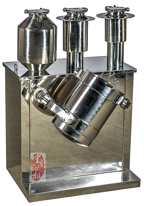 三維混合機(jī)能使物料在三維空間(前后、左右、上下)中翻轉(zhuǎn)混合,因而混合更為均勻。這種機(jī)器廣為物料需要精密混合的藥廠,藥物實(shí)驗(yàn)室、學(xué)校、研究所使用。