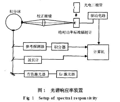如果不滿足以上4 個條件, (6) 式將不適用。為了提高光譜分辨率, 要求雙單色儀的光譜帶寬僅在幾納米內(nèi), 其結(jié)果是僅有幾毫瓦的激光功率可以利用。這對一個絕對輻射計(jì)同光電二極管直接比較是行不通的, 因此必須在其中間加入更靈敏的二級標(biāo)準(zhǔn)作為傳遞。