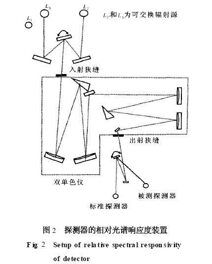 相對光譜響應(yīng)度測量用的傳遞標(biāo)準(zhǔn)是非選擇性的腔形熱電堆, 為了保持它的非選擇性, 熱電堆必須在窗口外操作。但由于沒有窗口, 探測器隨外界空氣波動很靈敏, 它將產(chǎn)生一個毫瓦級的等效噪聲功率。為了準(zhǔn)確測量, 必須提供幾十毫瓦的輻射功率, 該輻射功率對雙單色儀來說是不能接受的。如果使用單個單色儀, 則將會產(chǎn)生大量的雜散輻射, 但不會影響測量準(zhǔn)確度, 因?yàn)楸恍?zhǔn)的熱電堆與腔探測器一樣無選擇性。