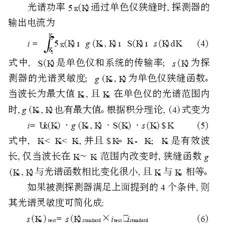 從另一方面講, 使用腔探測器對選擇性探測器( 如光電二極管v (K) ) 進(jìn)行校準(zhǔn)時, 由于雜散輻射的存在導(dǎo)致校準(zhǔn)失敗(但使用已校準(zhǔn)的同類型v (K) 探測器對其進(jìn)行校準(zhǔn)除外)。同理可知, 單個單色儀的高帶寬不會產(chǎn)生嚴(yán)重的誤差, 且(6) 式仍適用。