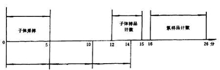 氣球法采樣系統(tǒng)示于圖4,其工作原理同雙濾膜法,只不過氣球代替了衰變筒。把氣球法測氡和馬爾柯夫法測潛能聯(lián)合起來,一次操作用26min,即可得到氡及其子體α潛能濃度。其時間程序示于圖5